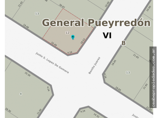 Lote en esquina de 451m2 en Los Pinares, con construccion a demoler, excelente entorno, Benito Juarez y Lopez de Gomara